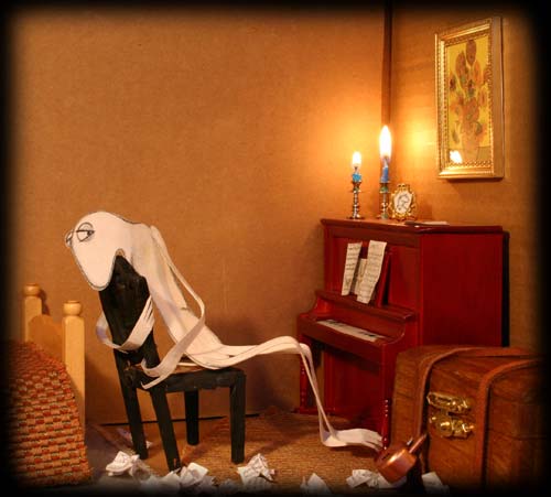 “Take down gifts from Rosaline? Never.” Angelo stomped over the crumpled sheet music and lay down in his bed. He shut his eyes. “Excuse me, Stephanie, but I need to dream up a tragic song for Rosaline now. My last gift to her before I die.”