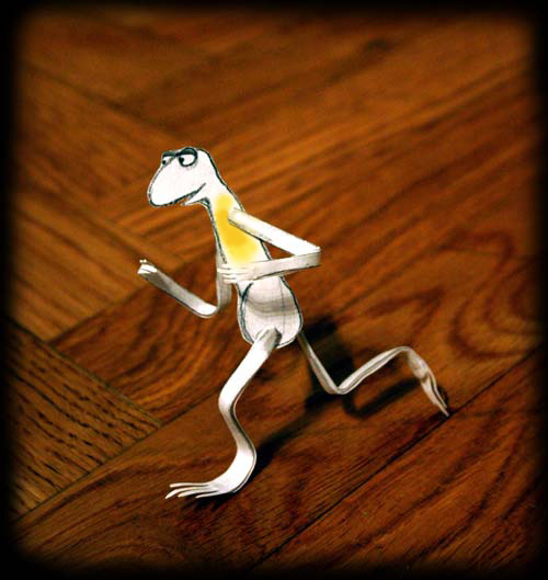 When I set Angelo on the floor, he took off running for the nearby bench.